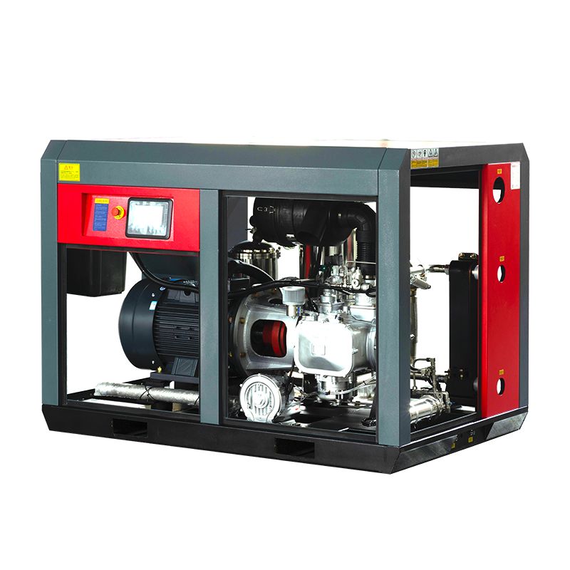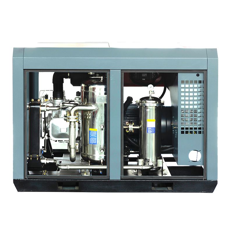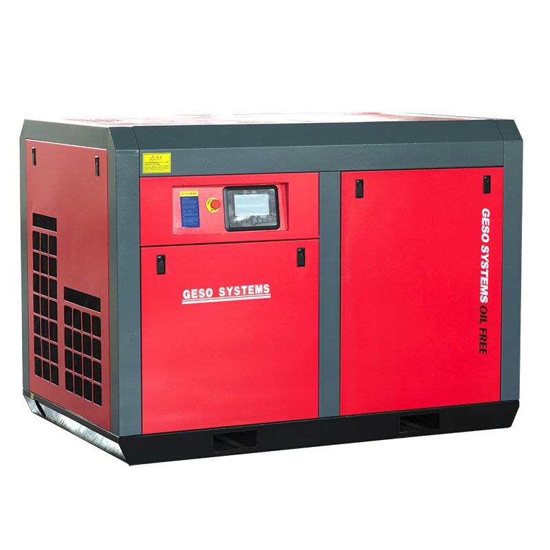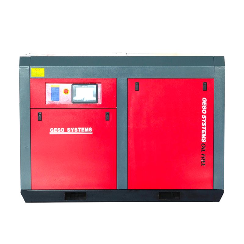 Vodou mazaný bezolejový vzduchový kompresor Geso je vynikající z hlediska konstrukce a výroby, používá přizpůsobený bezolejový jednošroubový hlavní motor Geso, voda místo mazacího oleje, bez oleje a vody, díky čemuž je stlačený vzduch šetrnější k životnímu prostředí, více stabilní a energeticky úspornější.